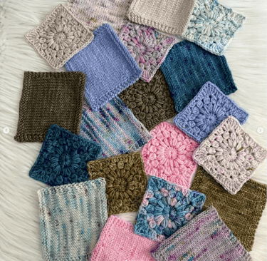 "Here are all the variegated colorways, lovingly knit and crocheted up by my two lovely swatch makers!"-Abby, owner of Poppy & Spruce Fibers